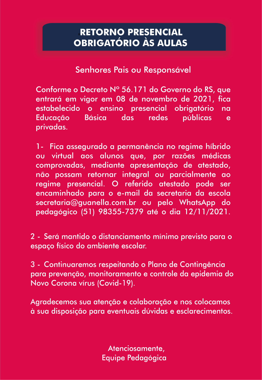 Retorno das Aulas Obrigatório